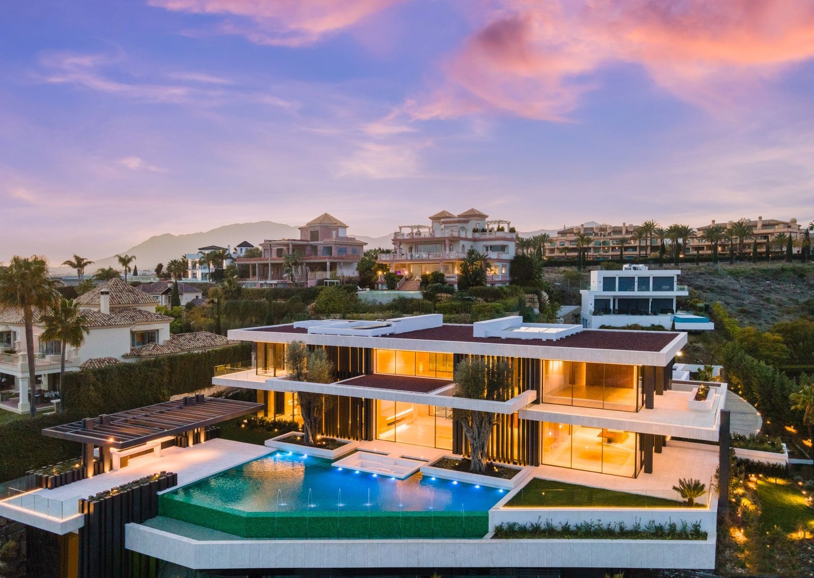 Welcome to Otto, the most extraordinary luxury villa ever built in Los Flamingos Golf. Aluxurious, cutting-edge frontline golf mansion designed by renowned Tobal architect. Otto is seton a large and elevated frontline golf plot, enjoying breathtaking views to the MediterraneanSea and the greens of Los Flamingos Golf. The villa has been finished to the highest qualitystandards, with flawless architectural features throughout. Otto welcomes you into animpressive entrance area, with magnificent water features. The entrance consists of a stunningentrance hall, with high ceilings and direct access to the open-plan living spaces. Expansive floor-to-ceiling windows open up to the magnificent views to the coastline. The masterpiece of thisluxurious home is the impressive staircase, connecting all levels in the most luxurious way. Theliving room is generous and very bright, boasting a high quality wooden floor and a modern gasfireplace. The open-plan custom Bulthaup kitchen offers a sleek design and makes every chef’sdream come true, with high quality Gaggenau appliances and an extraordinary attention todetails. Otto bedrooms are truly breathtaking, surrounded by an idyllic setting with magnificentviews, all bedrooms are distributed over the three levels with the master bedroom and agenerous guest bedroom on the upper level. The lower level of Otto boasts a luxurious state-of-the-art SPA, with indoor pool with salt-water treatment, sauna and hamam. Otto is the perfectluxury home to enjoy outdoor living, with a cutting-edge infinity pool with water features,overlooking the Mediterranean Sea, vast terraces around the pool area, outdoor fireplace, and awonderful metallic pergola with bar and BBQ. This is truly the most extraordinary estatecurrently on the market!